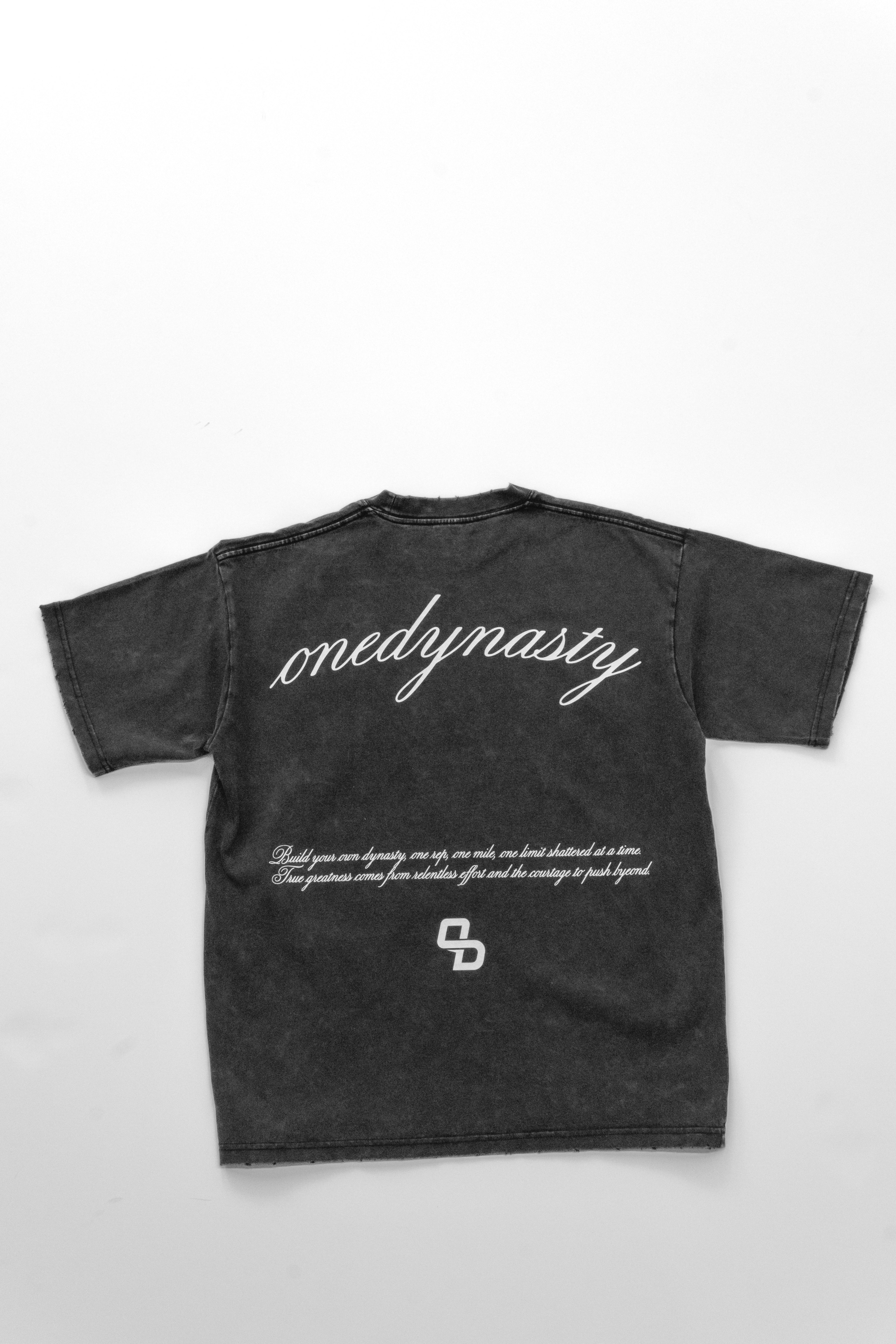 All cotton t-shirt in three washed colors with onedynasty signature logo on the back, plain front.